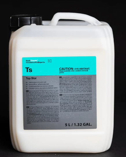 Premium care emulsion for deep pore cleaning and freshening plastic and rubber parts such as consoles, interior trim, seals, etc. Top Star creates a long-lasting, semigloss, natural sheen and protects the surface permanently against new dirt and UV radiation. Special active ingredients keep plastic supple, have an antistatic effect and provide a new and attractive look. With fresh fragrance. With Daimler approval.
