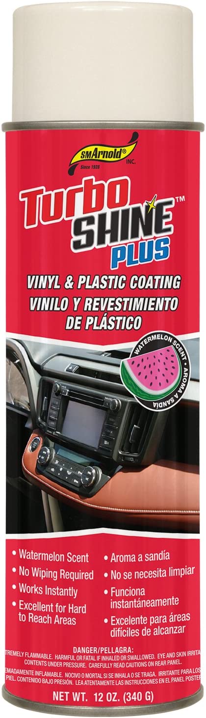 Spray on air vents, dashboards, consoles, door and trunk seats. Fast and easy to use. Great for those hard-to-reach places. Just spray on and walk away. No wiping necessary. Leaves pleasant watermelon scent. California/OTC VOC Compliant.